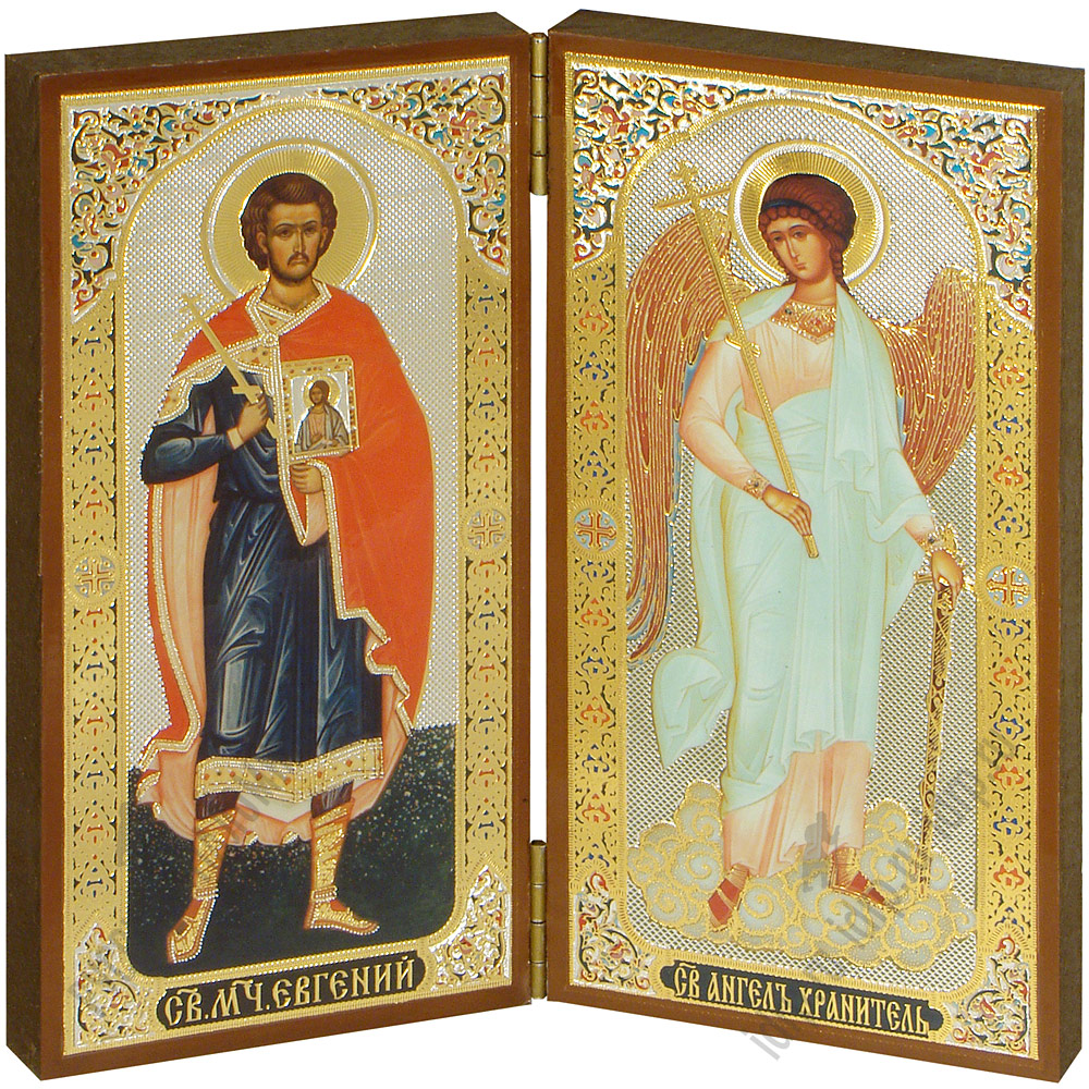 Икона-складень: Святой мученик Евгений Севастийский - Ангел-Хранитель - купить - 300руб